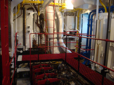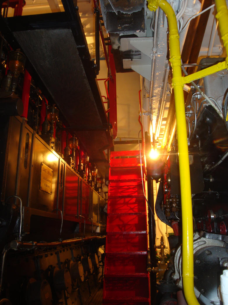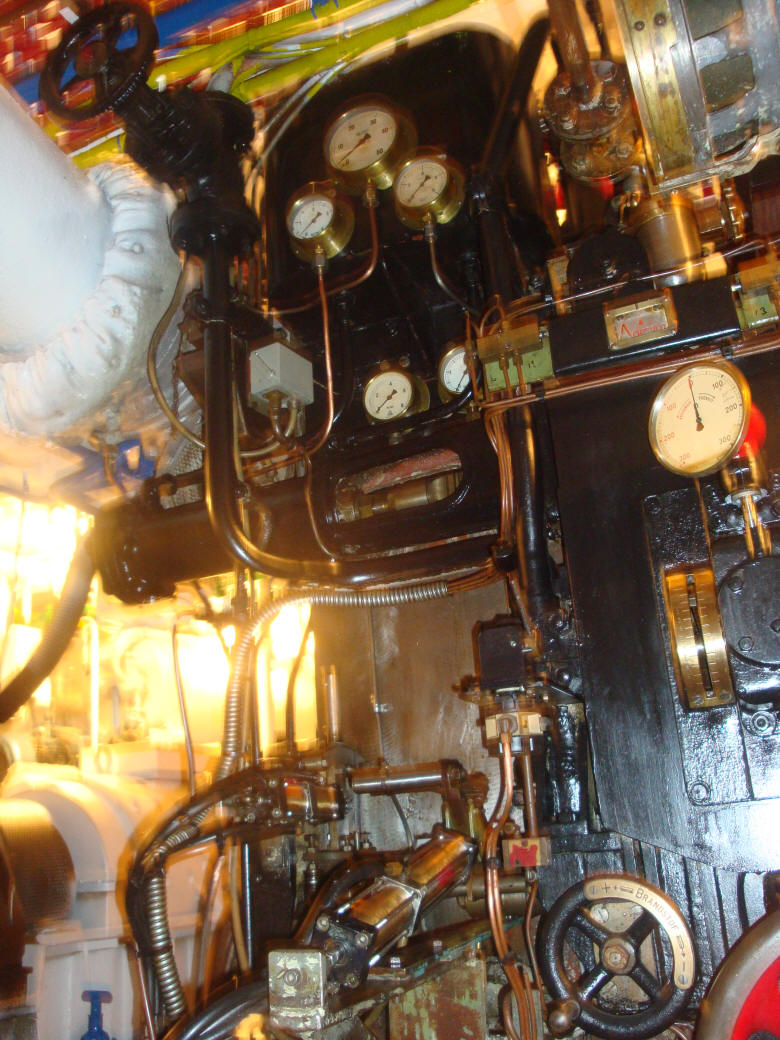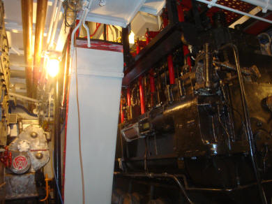 Bakboordzijde hoofdmachine, nokkenaszijde, met rechts de Werkspoor. |